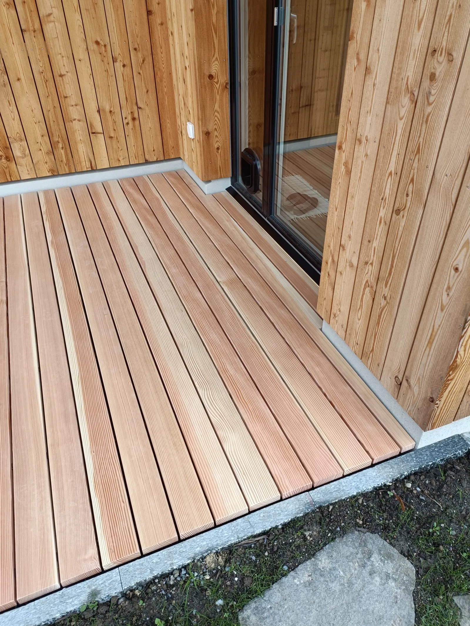 Terrassenboden aus Douglas mit Alu-Unterkonstruktion, verdeckte Montage
