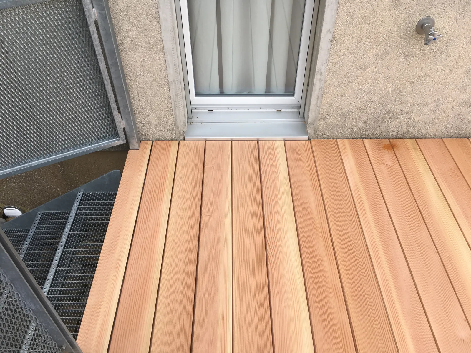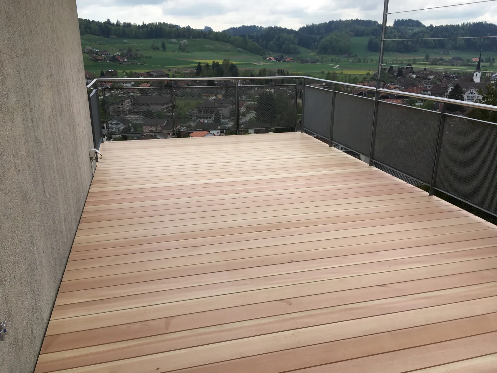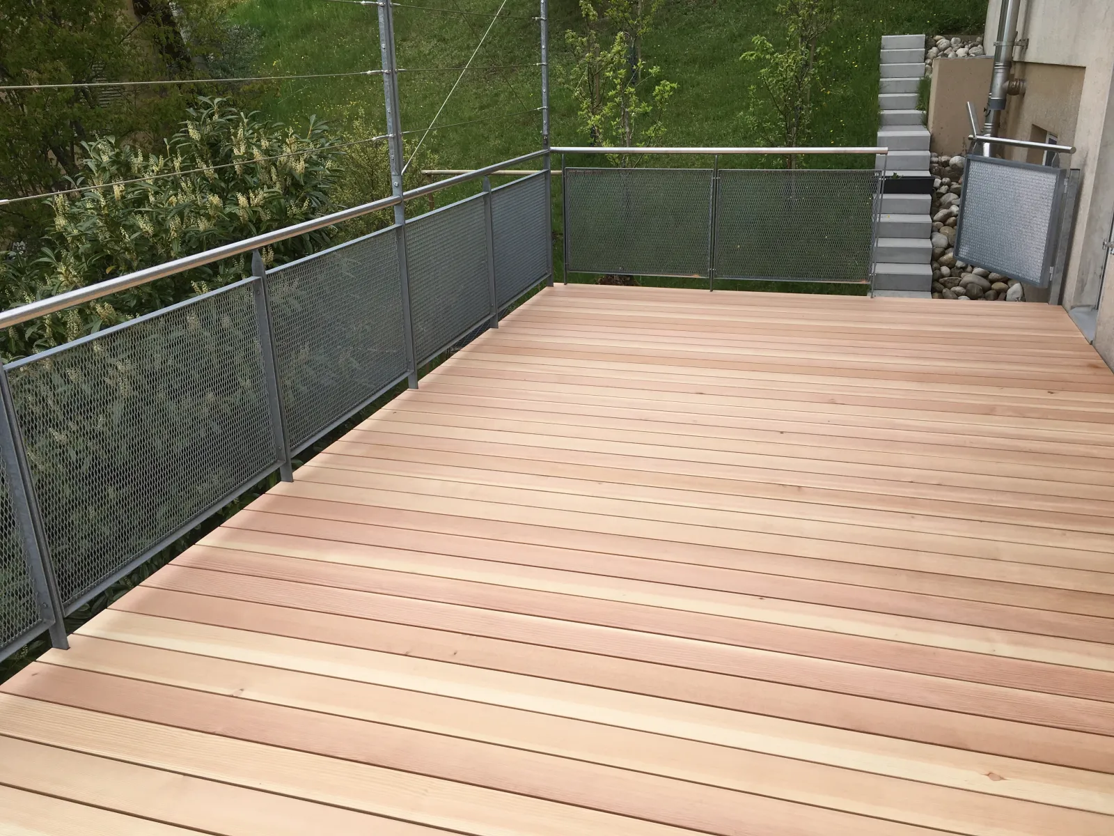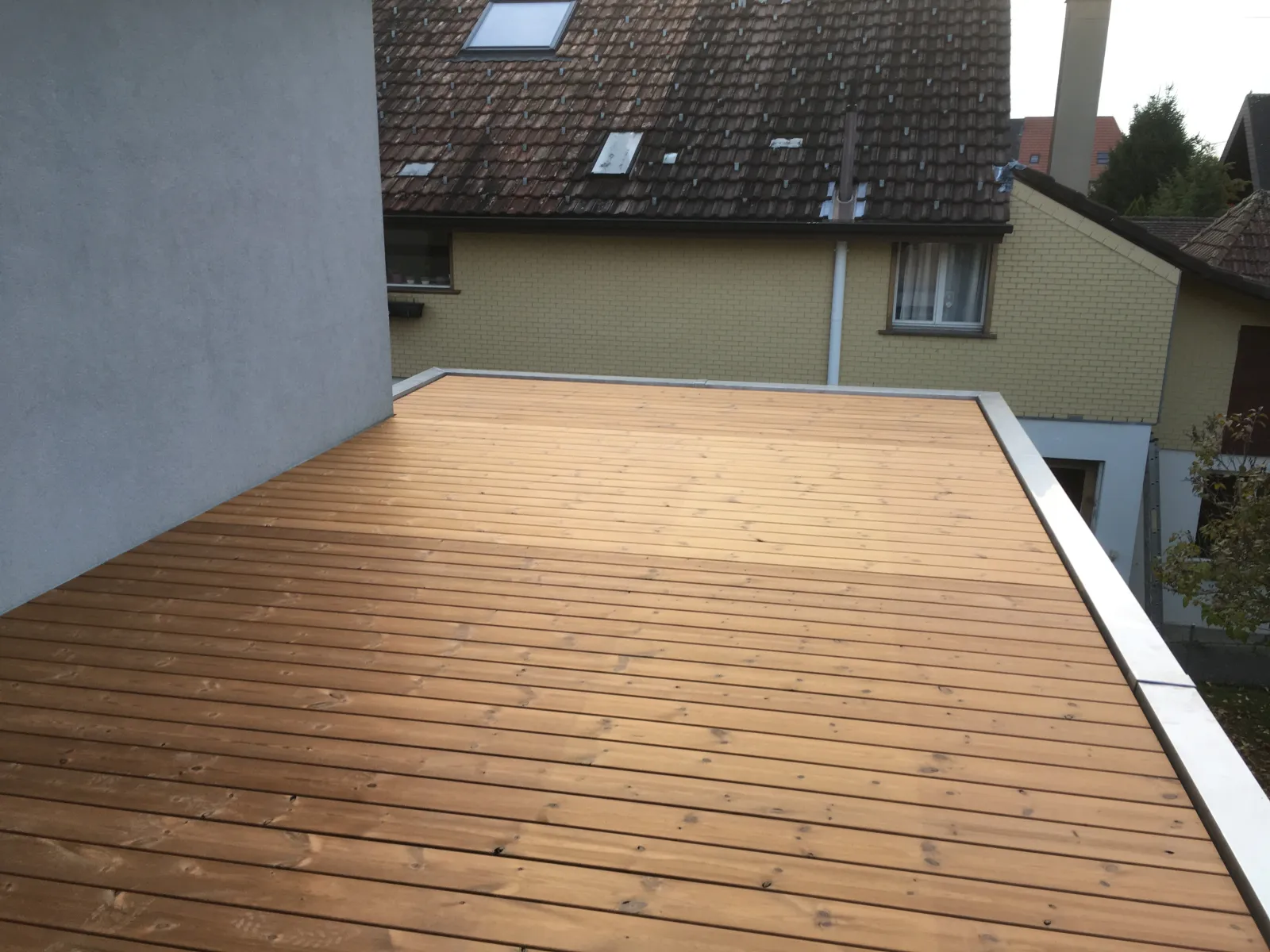 Neuer Balkonboden mit Douglas-Brettern , verdeckte Montage